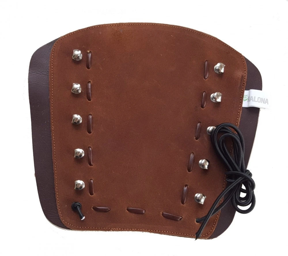 Dieser handgefertigte traditionelle Armschutz wurde aus zwei verschiedenen und farblich zueinander gut abgestimmten Ledersorten gefertigt. Der Verschluss erfolgt durch ein Gummiband.