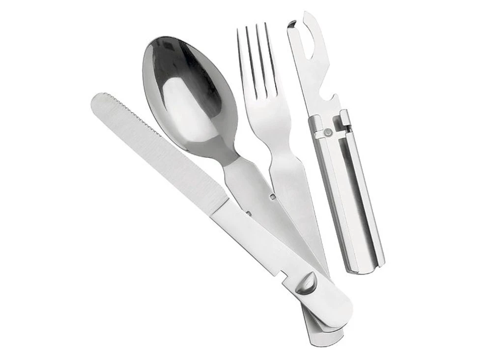 Bundeswehr Feldbesteck, 4-teilig, ganz aus rostfreiem Stahl.