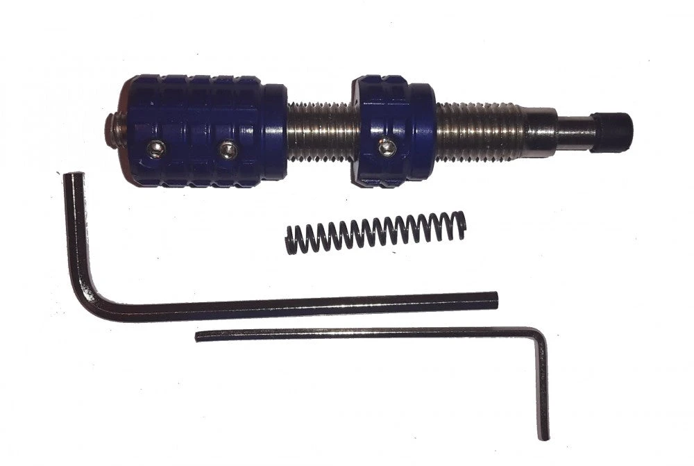 Dieser Button ist einfach zu justieren. Er verfügt über einen Pfeilanlagestift aus Metall. Weiterhin liegen im Pack eine weichere Feder, ein Justierstift und zwei Imbusschlüssel bei.