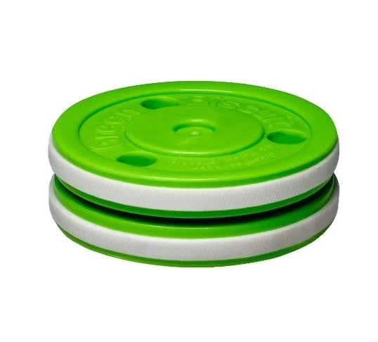 Der Grüne Biscuit PRO ist ein „Off-Ice Training Hockey Puck um ihre Schlägerführungs-Fähigkeiten und Pässe zu verbessern. Der Biscuit wiegt ungefähr ein Gramm weniger als ein Hockey-Puck aber mit der zusätzlichen Reibung vom Beton oder Asphalt wirkt Green Biscuit PRO wie ein echter Eishockey-Puck auf dem Eis. Der GB PRO ist nicht für Schüsse geeignet, nur für Stickhandling und Pässe.