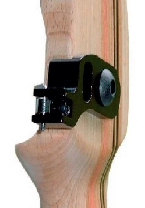 Der stabile Pfeilauflagefinger garantiert eine hohe Verscheißfestigkeit der Auflage. Hauptsächlich wird das Modell mittels Buttons befestigt. Optional kann die Auflage mittels Schraube (kann optinal im Angebot mit erworben werden) am Bogen befestigt.
