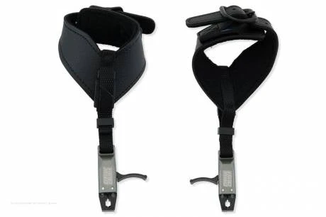 Release mit Befestigung an einer Handgelenkschlaufe. Die Verwendung ist sowohl für den RH- als auch den LH-Schützen möglich.