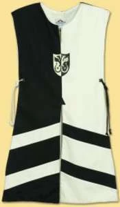Wappenrock für Kinder handgearbeitet schwarz/weiss aus reiner Baumwolle, gefüttert, mit aufgesticktem Brustwappen abgestimmt auf Schildmotive, waschbar bei 30°C,