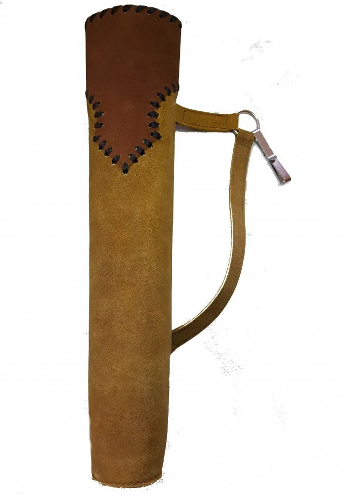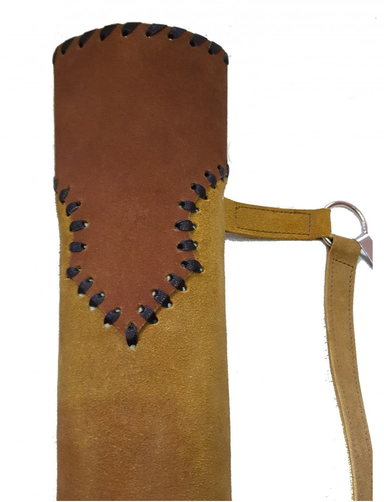 Der Köcher wird je nach Händigkeit an der Hüftseite getragen. Durch den Metallclip kann er an einem Hosengürtel befestigt werden. Besonders im tradtionellen Bogensport kommt ein Echtlederköcher gerne zum Einsatz