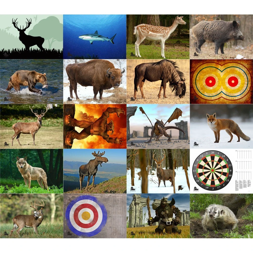 Unser Auflagenset besteht aus insgesamt 20 Stronghold Scheibenauflagen (59 x 84 cm) mit unterschiedlichen Motiven
